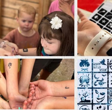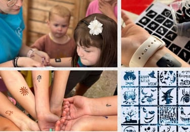 Al llarg de la tarda també hi haurà un taller de tatuatges temporals de tinta o de pols de colors, són hipoal·lergògens (no fan mal a la pell) i dissenyats per a tota la família, desapareixen fàcilment amb alcohol, oli o simplement al cap de 10 dies.