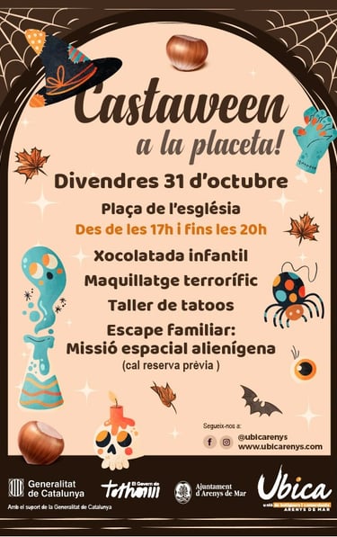 Per tant, no deixis escapar l’oportunitat de ser part d’aquesta celebració divendres 31 d'octubre a Arenys de Mar on celebrarem Castaween mentre el comerç t'espera i on tota la comunitat s’uneix per celebrar les tradicions i gaudir de les activitats preparades.